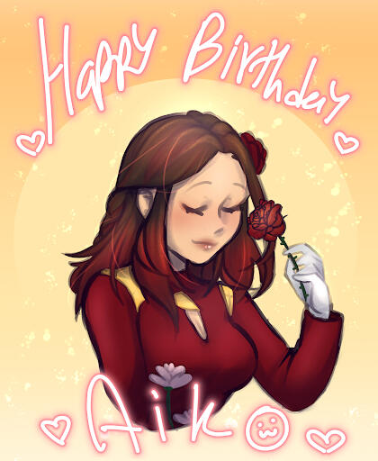 Happy birthday Aiko! I hope your resting your goddamn hands or else! I’ve really enjoyed getting to be your friend and im really excited for what the future holds for you.